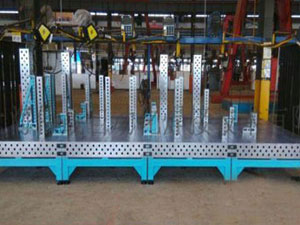 三维柔性平台适用范围:用于焊接、机械加工和检测工件。例如:钢结构、各种车辆车身制造、自行车摩托车制造、工程机械、框架和箱体、压力容器、机器人焊接、钣金加工、金属家具、设备装配、工业管道(法兰)、检测系统、电器机械(压开关、变压器、电力控制等)。三维柔性平台的承载能力,钢性稳定,它的五个面均加工有规则的孔,并刻有网线。焊接平台可方便地延伸和扩展,组合。经扩展的标准台面可??榛亩ㄎ缓图薪糁苯恿釉谝黄稹T诎沧?、调整和定位工件过程将柔性三维组合焊接工装系统的通用功能展示的淋漓尽致,尤其在了大型工件方面的应用上。专用工装和柔性工装的对比表