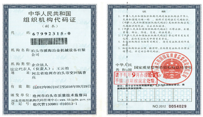 泊头市溪海冶金机械设备有限公司 » 荣誉资质