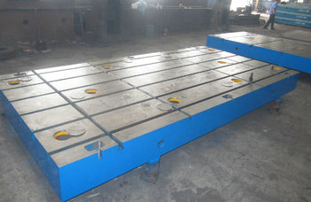 我公司主打产品是铸铁平台如:检验划线平台、各种规格机床铸件,铸铁t型槽平台、机床工作台等。近日为山东机床厂定做2块试验专用t型槽平台,规格2000*4000mm 1块、1800*4000mm 1块。我公司技术工程师现场考察设计,CAD制图双方确认,投产25个工作日加工完成,我厂安装人员安装调试,经过三方检验合格已投入使用。